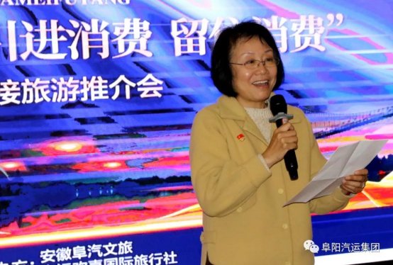 市文化旅游体育局二级调研员杨静致辞,对欢喜旅行社大力推介阜阳表示肯定和赞赏。