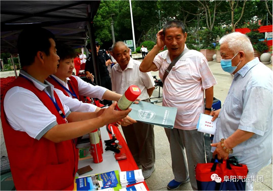 6月16日是全国“安全生产日”宣传咨询日。这天,阜阳汽运集团和安徽瑞特消防公司联合在阜阳市清河广场设立宣传咨询台,向过往群众宣传安全生产和消防安全常识。