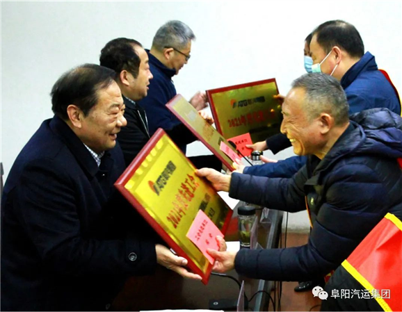 副总经理胡卫国宣读表彰决定:物流中心党总支等4个基层党组织被授予集团公司2021年度“先进党组织”称号,乔静等36名同志被授予集团公司2021年度“优秀共产党员”称号;物流中心等6个单位被授予劳动竞赛“先进单位”称号,第一汽车队运务科等18个班组被授予劳动竞赛“先进班组”称号,马恒杰等3名同志被授予“突出贡献先进个人”称号,马甲等85名同志被授予“先进生产(工作)者”称号;阜阳汽车东站工会等5个单位被授予“先进工会”称号,韩利利等49位同志被授予“工会积极分子”称号。