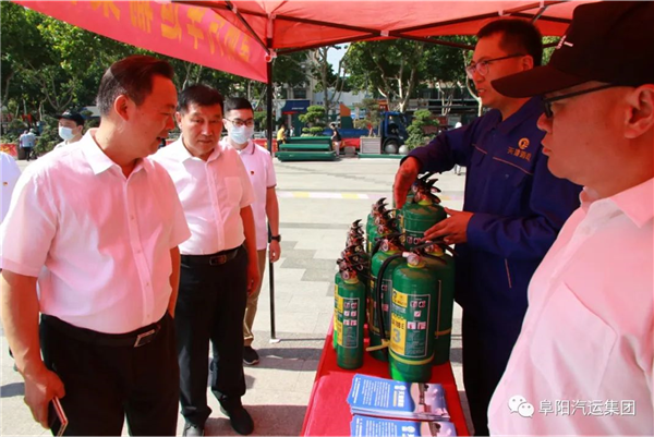 宣传咨询过程中,阜阳市人大常委会副主任王玉峰等领导同志来到现场慰问工作人员,详细了解各单位安全生产工作举措,要求各单位进一步把安全生产工作放在心上,要筑牢思想防线,推动安全责任落实到位。在阜阳汽运集团展台前,王玉峰副主任看到整齐摆放的天池灭火器,叮嘱天池消防公司工作人员要严把产品质量,更好地把消防产品宣传出去。(纳言)